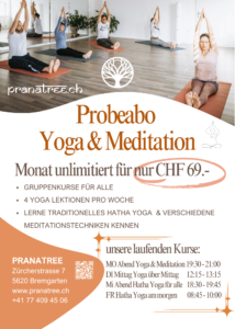 | Montag | 19:30 – 21:00 | Yoga & Meditation | mit Esther |